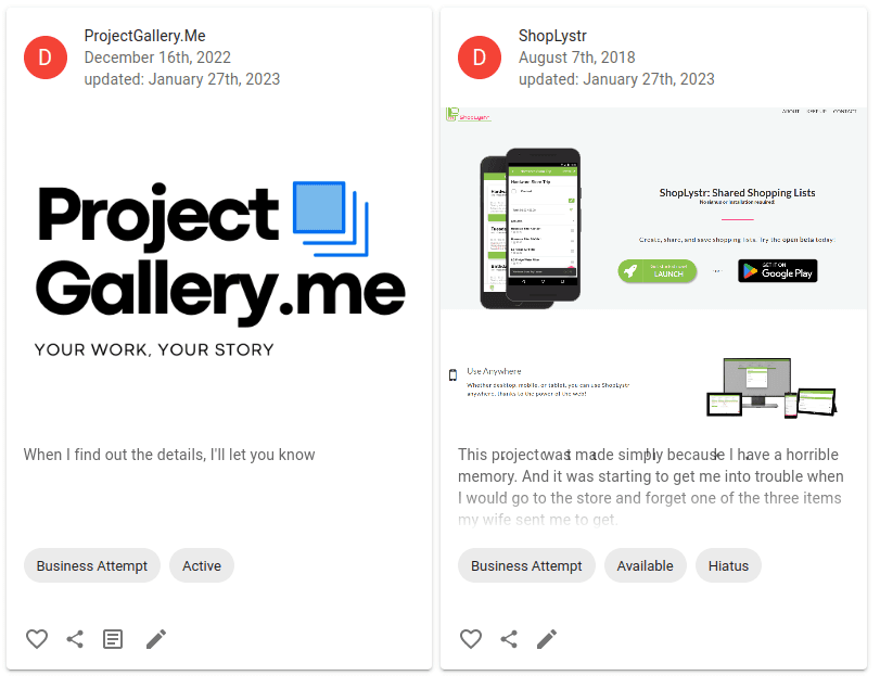 Add at-a-glance context to your project with custom category labels. Take it a step further by linking off-site for the project itself or any other information that others would find interesting.